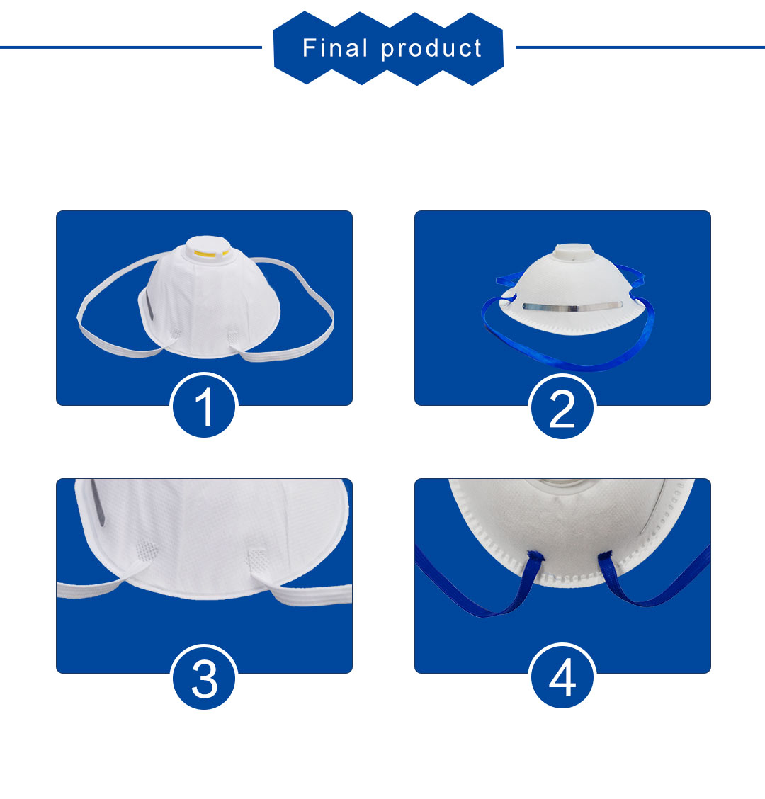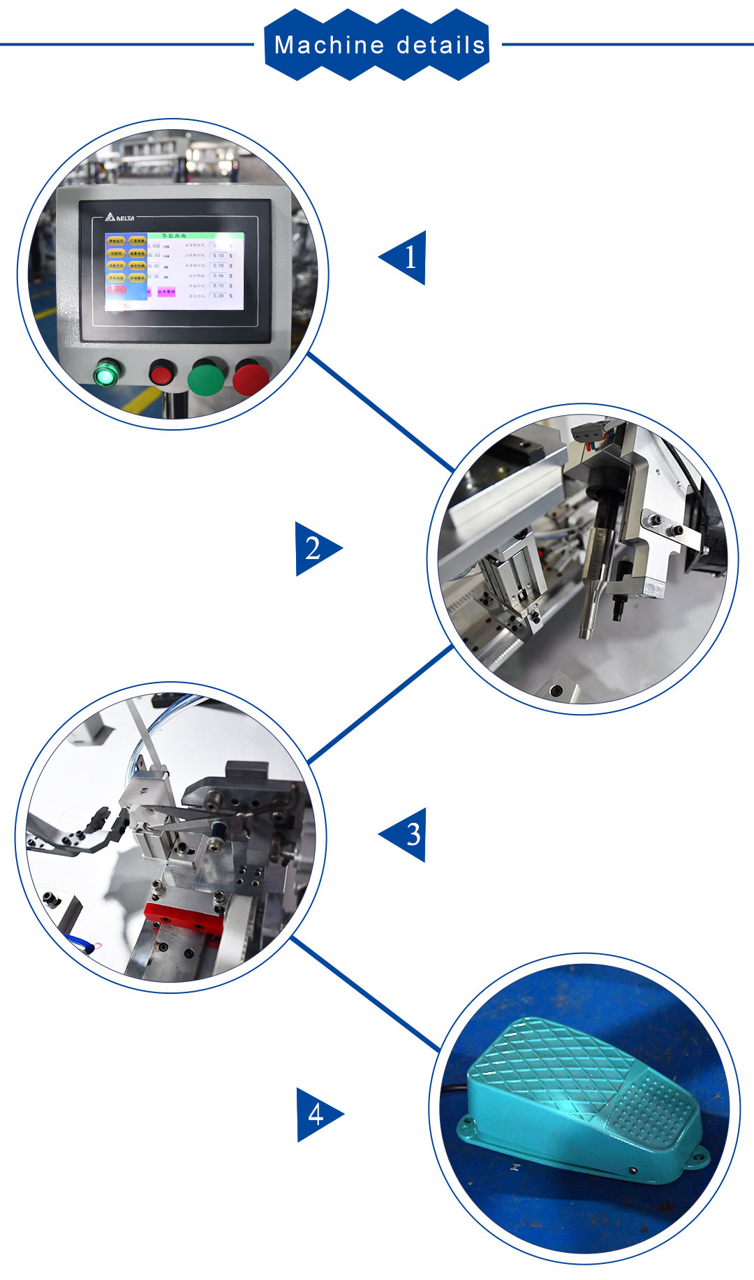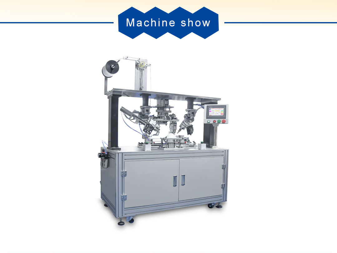 This machine uses ultrasound to weld earloop on cup mask one by one.