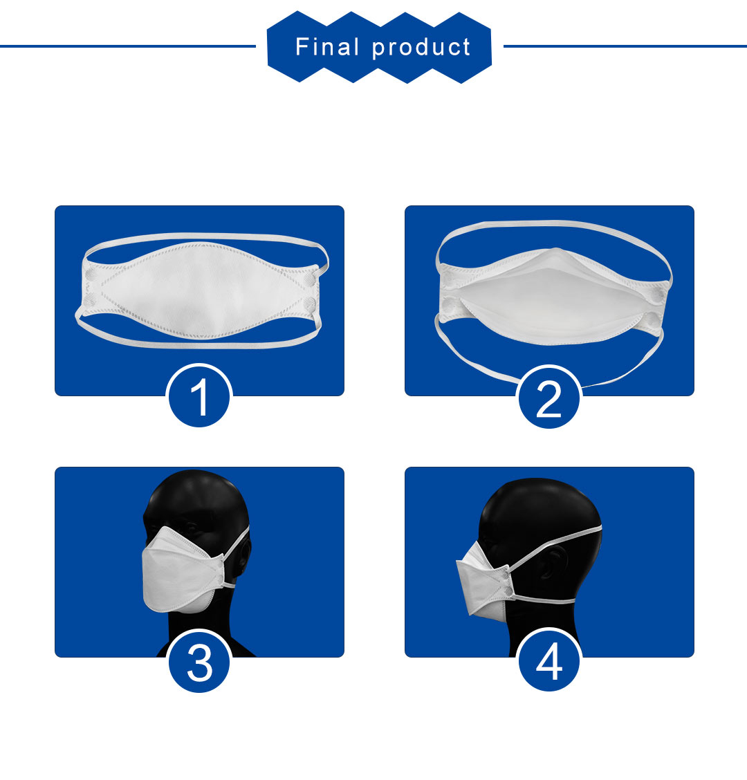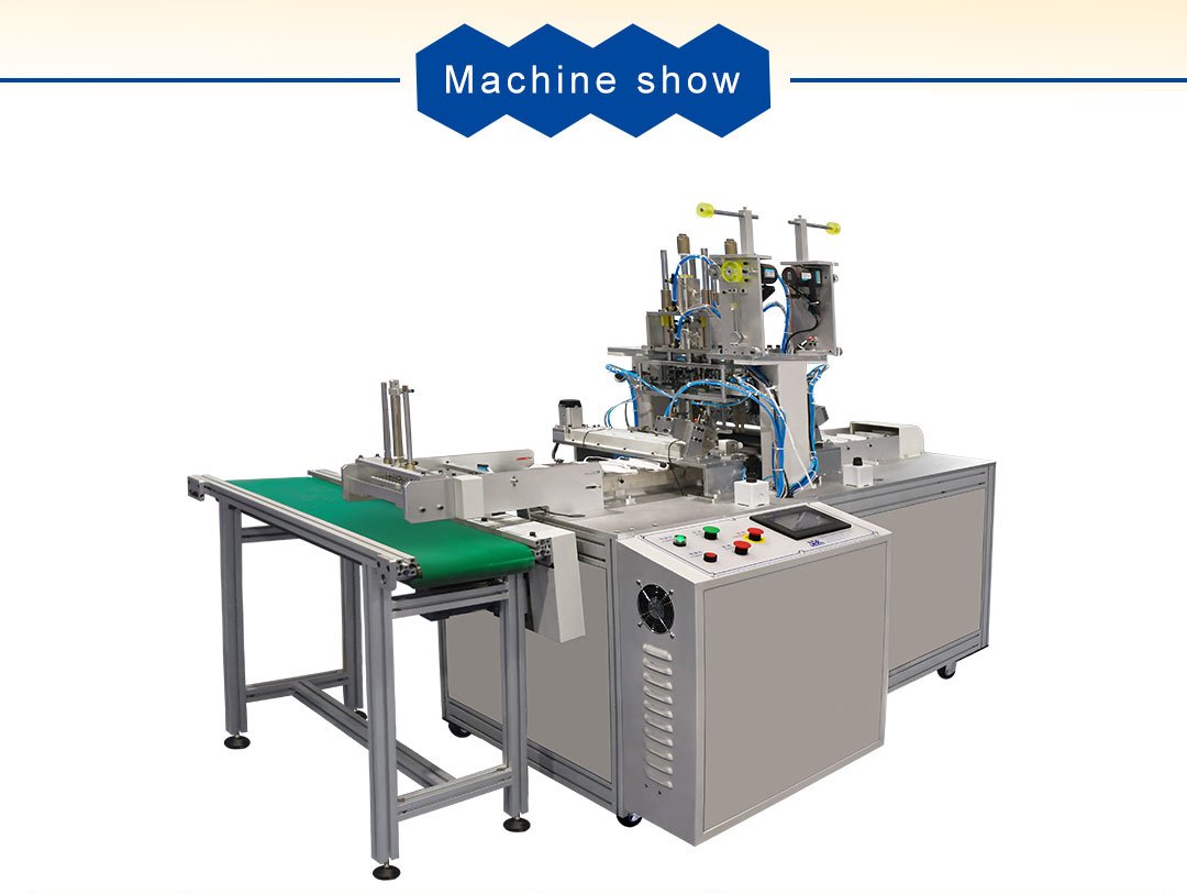 The machine adopts the special fixture clip structure and the ultrasonic welding system to weld the head hanging strap automatically on the two ends of the fish shaped mask. The whole machine is antirust made of aluminium alloy structure, PLC microcomputer control, high stability.
