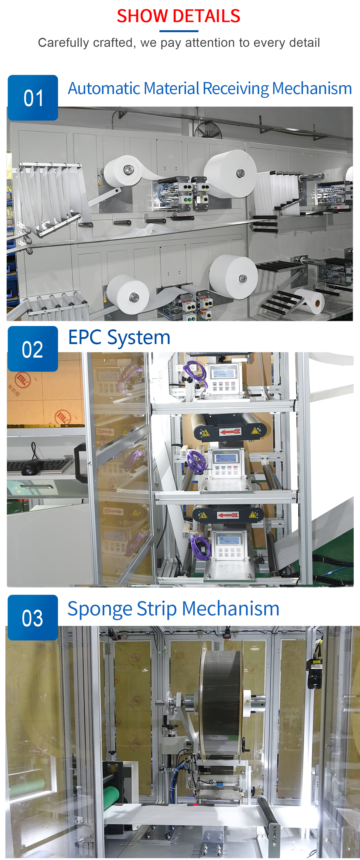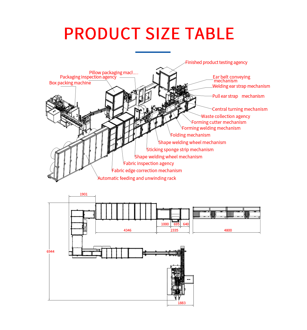 Fully automatic intelligent fish mask production line: This machine is fully automated from material to finished product to packaging into the bag and then into the box. It adopts an automatic material splicing mechanism. When the non-woven fabric and meltblown cloth are used up, the material can be automatically spliced. Function, non-stop for material change, adopts CCD detection system, automatically rejects defective products, and improves the good product rate after packaging. Optional func