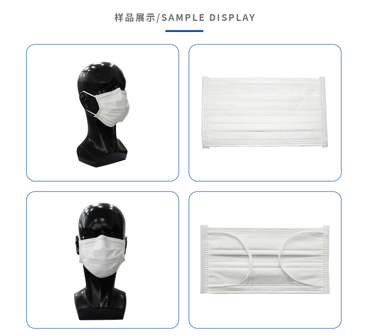 This machine is a fully automated machine for producing flat masks. The machine has a double nose line design. The nose line is fixed by sticking strips. It consists of a body and an ear strap machine. The body production to the earband welding are all automated