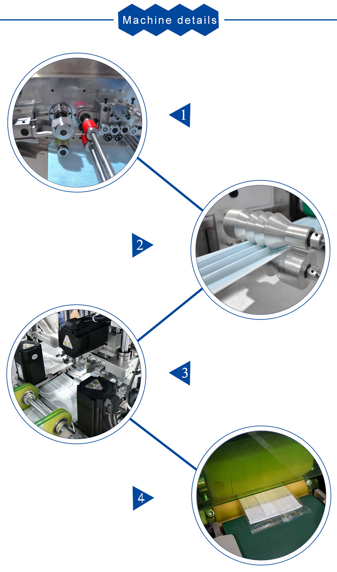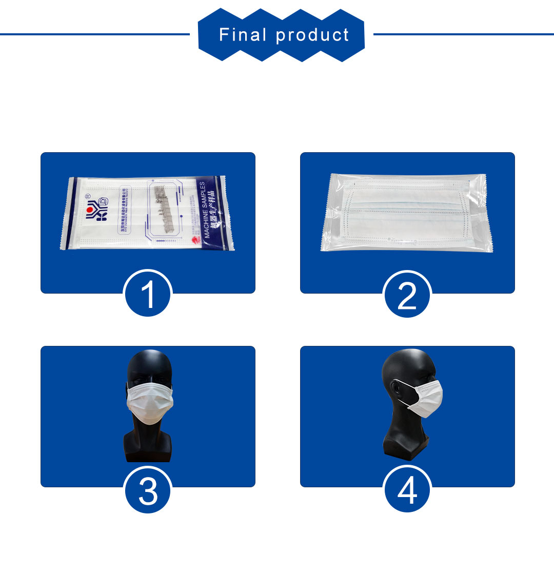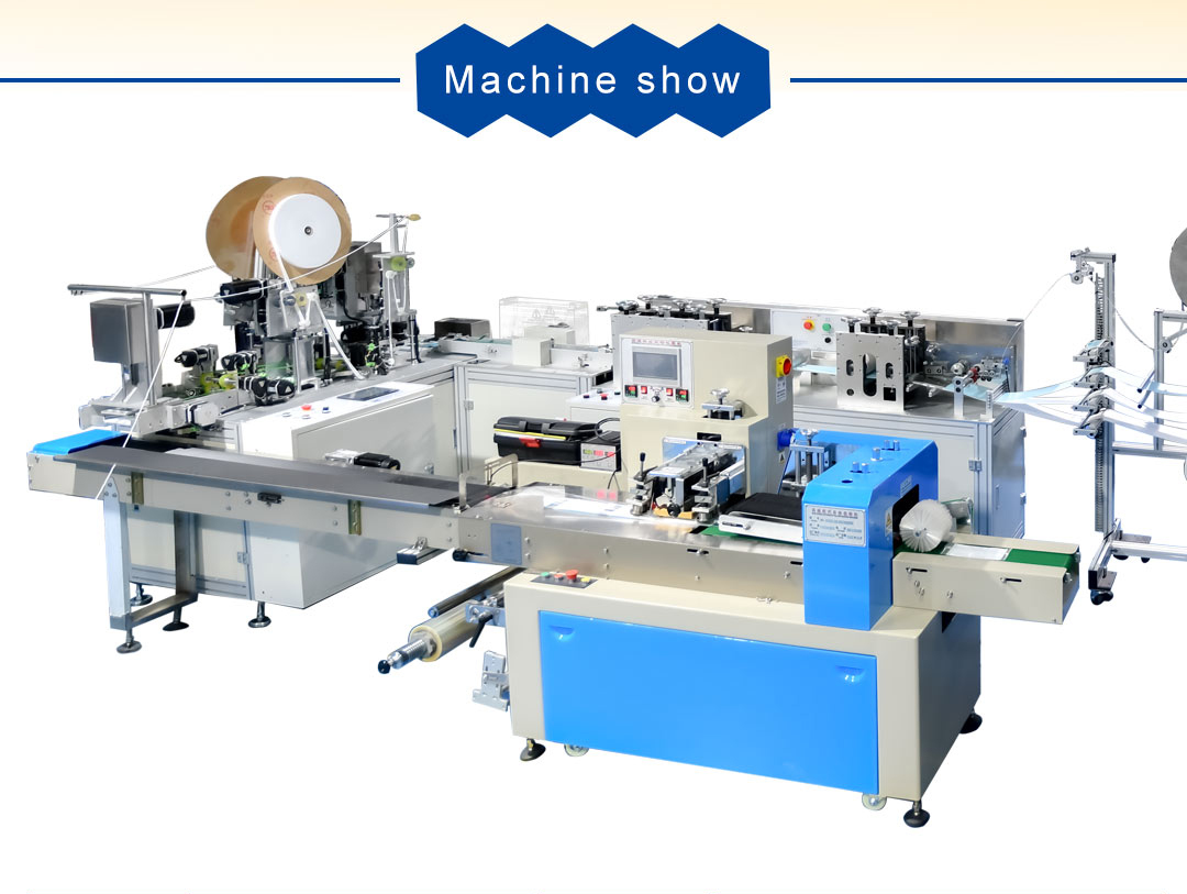 This machine is a flat mask machine capable of automatic packaging. It is fully automated from the production of the mask body to the welding of the nose line, the welding of the ear straps to the packaging of the finished product.