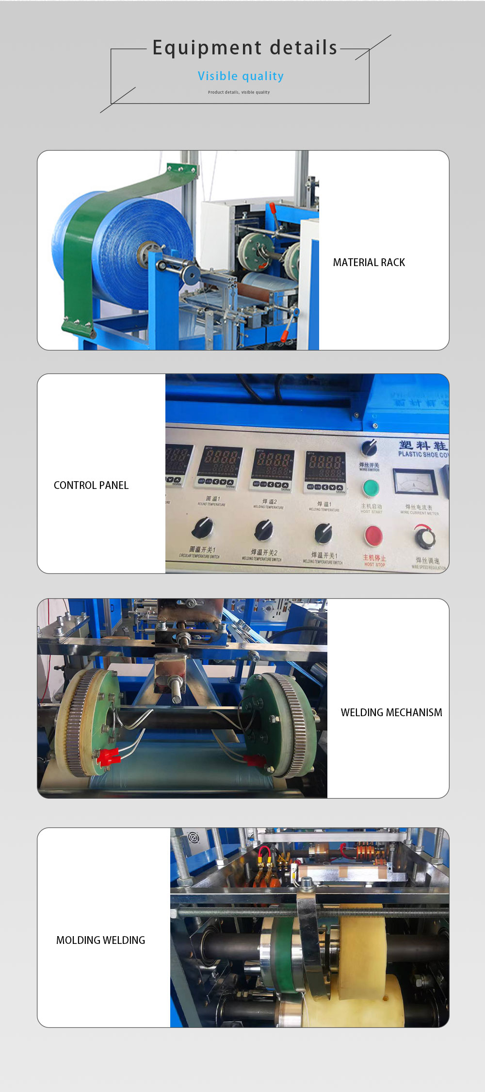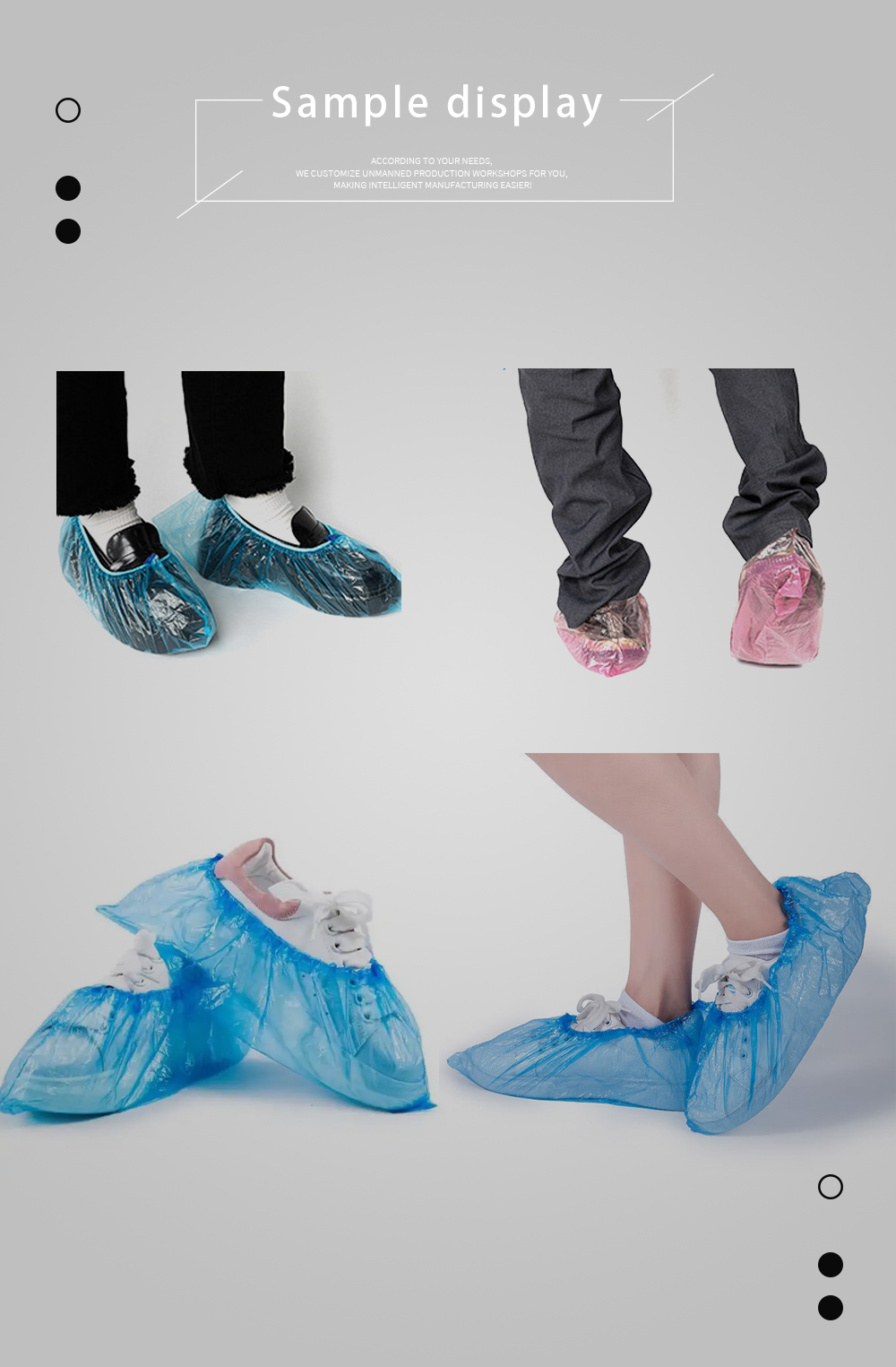 This machine is a special machine for automatically producing elastic PE shoe covers. The product is suitable for hospitals or dust-free enterprises. The whole machine is fully automated from automatic feeding to finished products, without any manual operation.