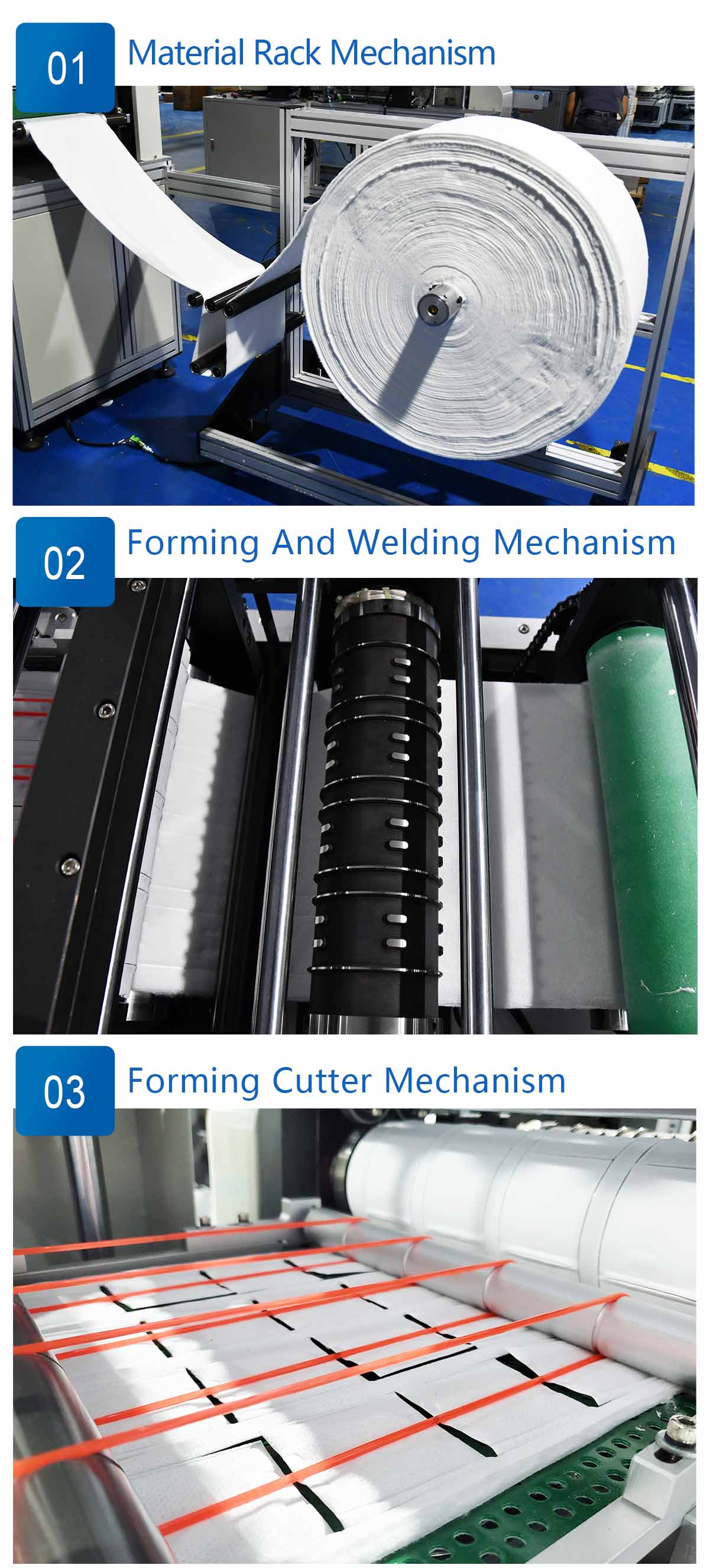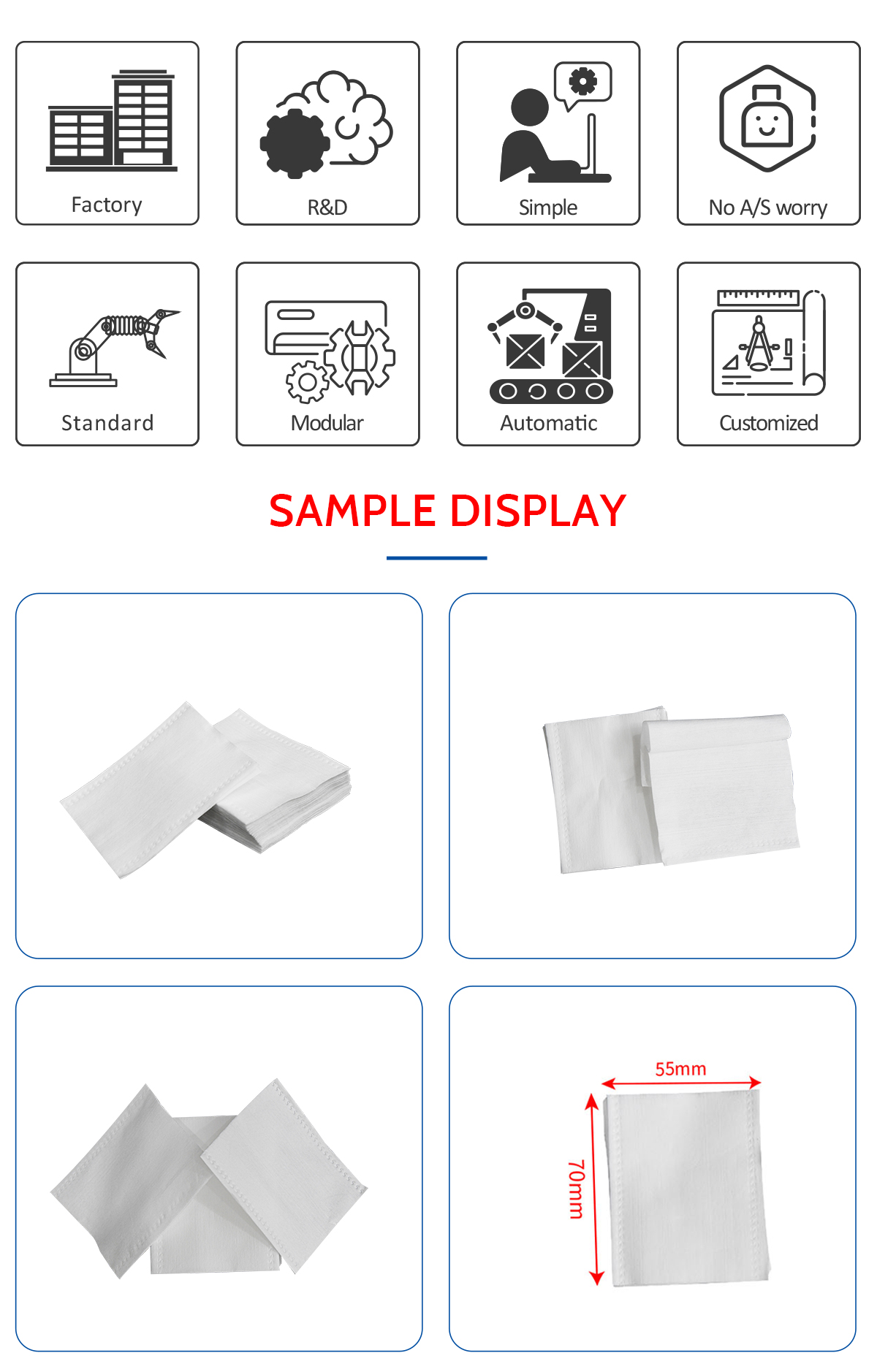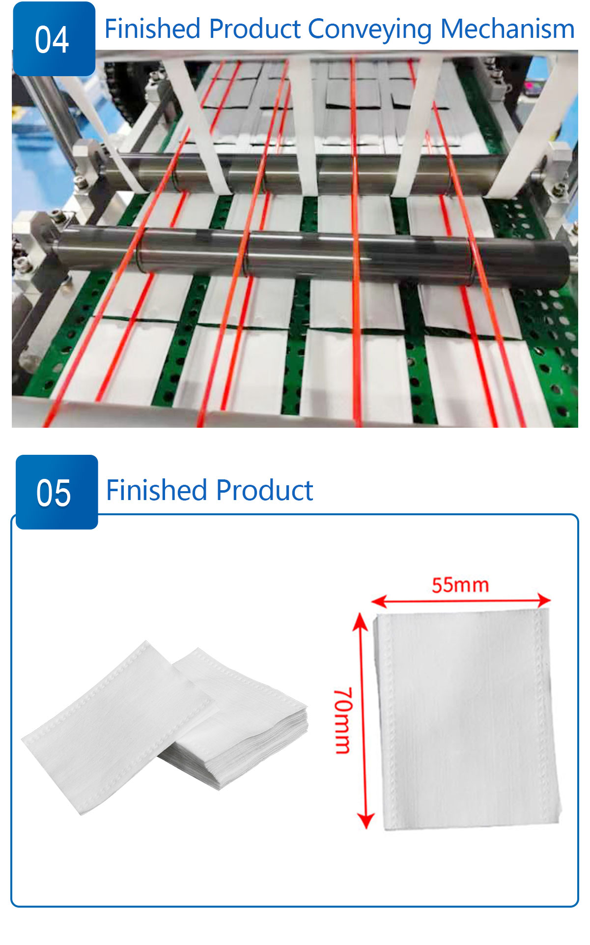 This machine is a fully automatic machine specializing in the production of pure cotton spunlace cloth plug-in (removing) cotton. The equipment is fully automatic from raw materials, transportation, cutting, waste winding to arranging finished products. Different patterns can be customized according to customer requirements. The equipment adopts the most constant oil temperature heating and the most stable mechanical cold cutting method, and discharges the finished products with the most reasona