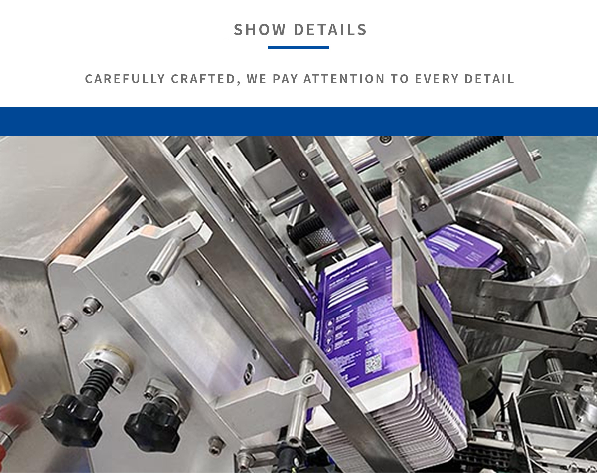 Automatic cartoning machine The standard cartoning machine has two models: box insertion and box gluing. A hot melt glue machine can be selected according to customer requirements, and hot melt glue spray glue sealing and mechanical brush glue sealing can be used.The automatic cartoning machine can be used alone, integrating box opening, cartoning, folding and sealing, and can be used with and without inner supports at the same time. Can also be used with other devices on the front and rearThe connection enables linked use to realize functions such as automatic filling, automatic tablet counting, automatic weighing, cigarette pack machine, printing serial number, etc.