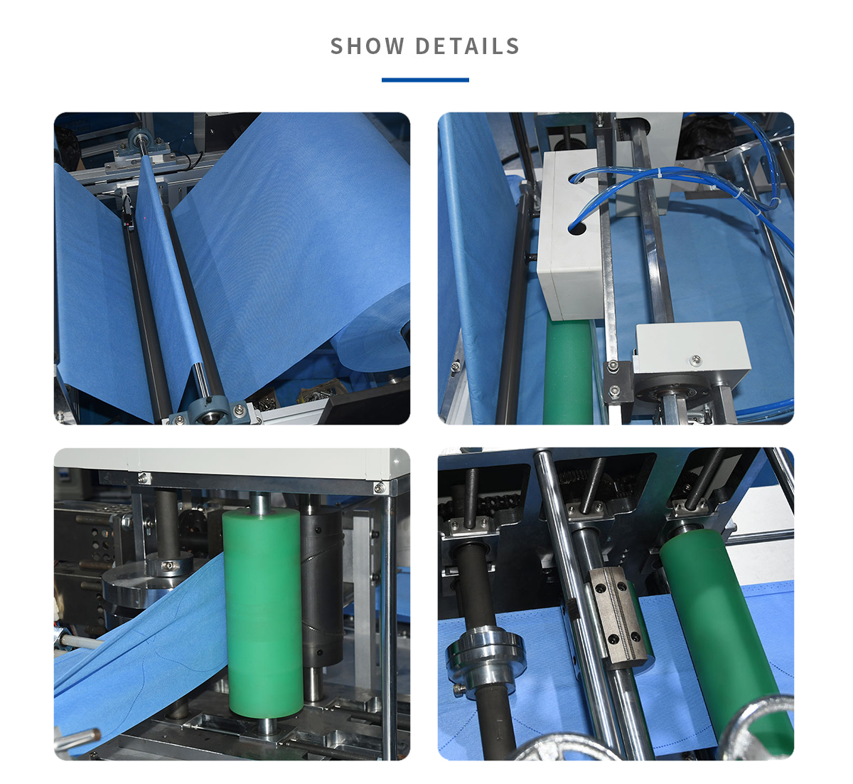 This machine adopts the advanced ultrasonic welding method to fold the non-woven fabric into a doctor's cap at one time. The man-machine interface operation only requires one person. Built-in PLC program control, high stability, low failure rate, imported deceleration brake motor, effectively reducing the defective rate of products. The beautiful and solid aluminum alloy frame will never rust. Under the condition of changing molds, doctor caps of different industrial specifications can be p